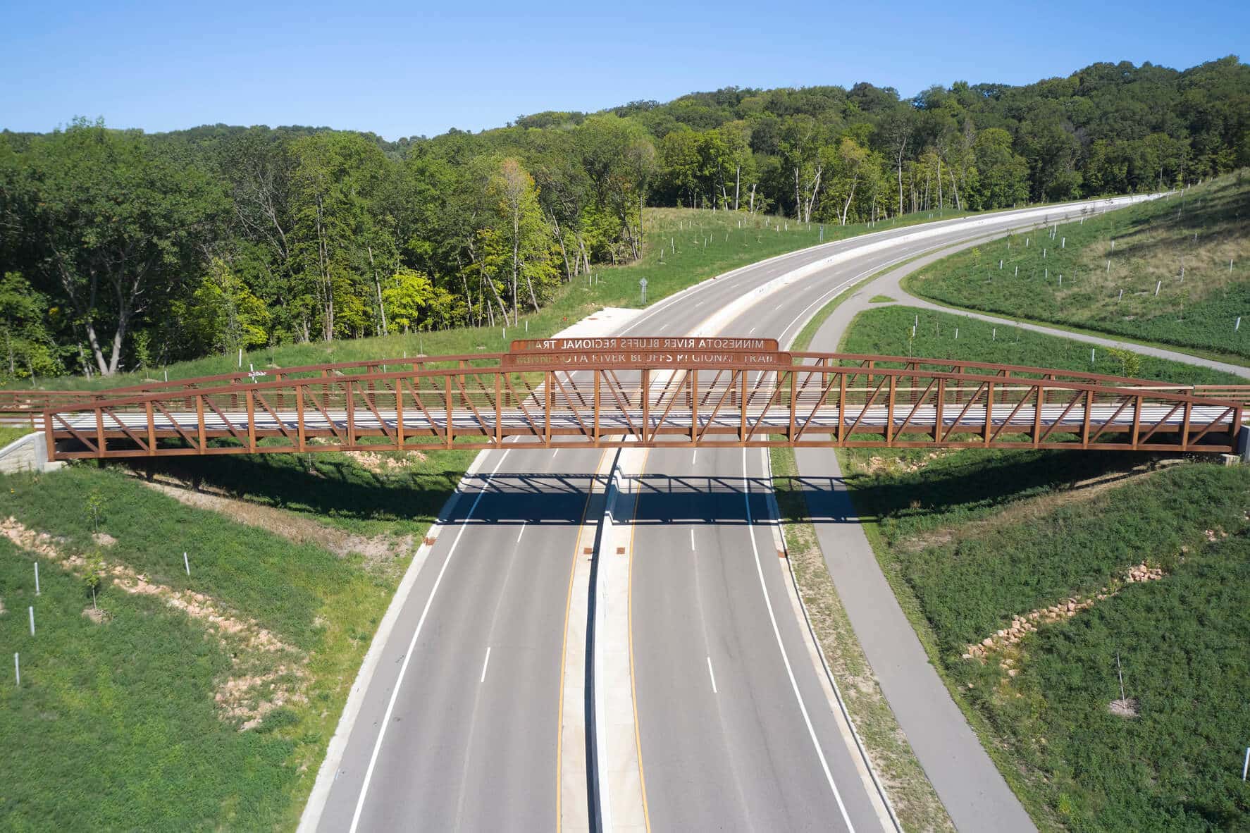 The project included the construction of trails along both sides of the roadway, a rectangular rapid flashing beacon pedestrian crossing, construction of a prefabricated bridge over CSAH 101 to facilitate the Minnesota River Bluffs regional trail crossing, construction of a second prefabricated bridge over Bluff Creek to facilitate a trail crossing along Flying Cloud Drive, and installation of a pedestrian tunnel under CSAH 101. Kimley-Horn was the prime consultant and led the project. Our team provided project management, preliminary design, environmental documentation, final design, and construction administration.