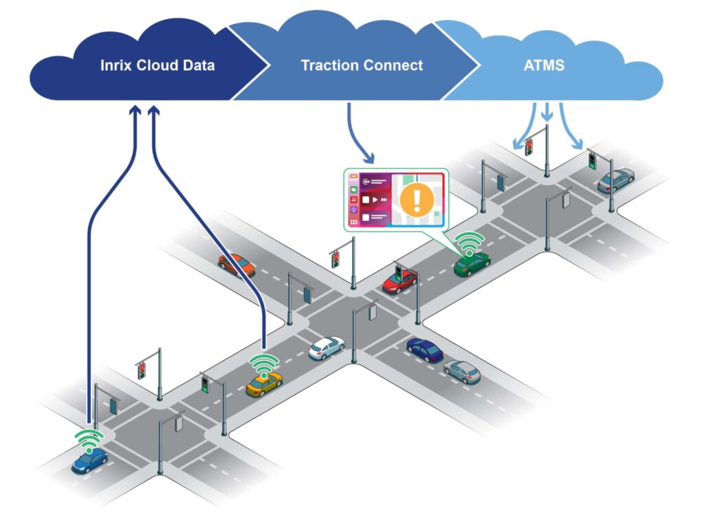 The Kimley-Horn team worked with the Regional Transportation Commission of Washoe County (RTC Washoe); City of Sparks; University of Nevada, Reno; and Inrix to use live travel time data from the cloud to adjust signal timing and provide virtual alerts to drivers in the network based on their location. To allow operators to set parameters for traffic signal management and utilize virtual dynamic message sign (vDMS) systems, we brought in our proprietary smart cities solution, Traction Connect. This platform helped eliminate the need for physical field devices, automatically invoke signal timing flush plans, and send real-time vDMS communications.