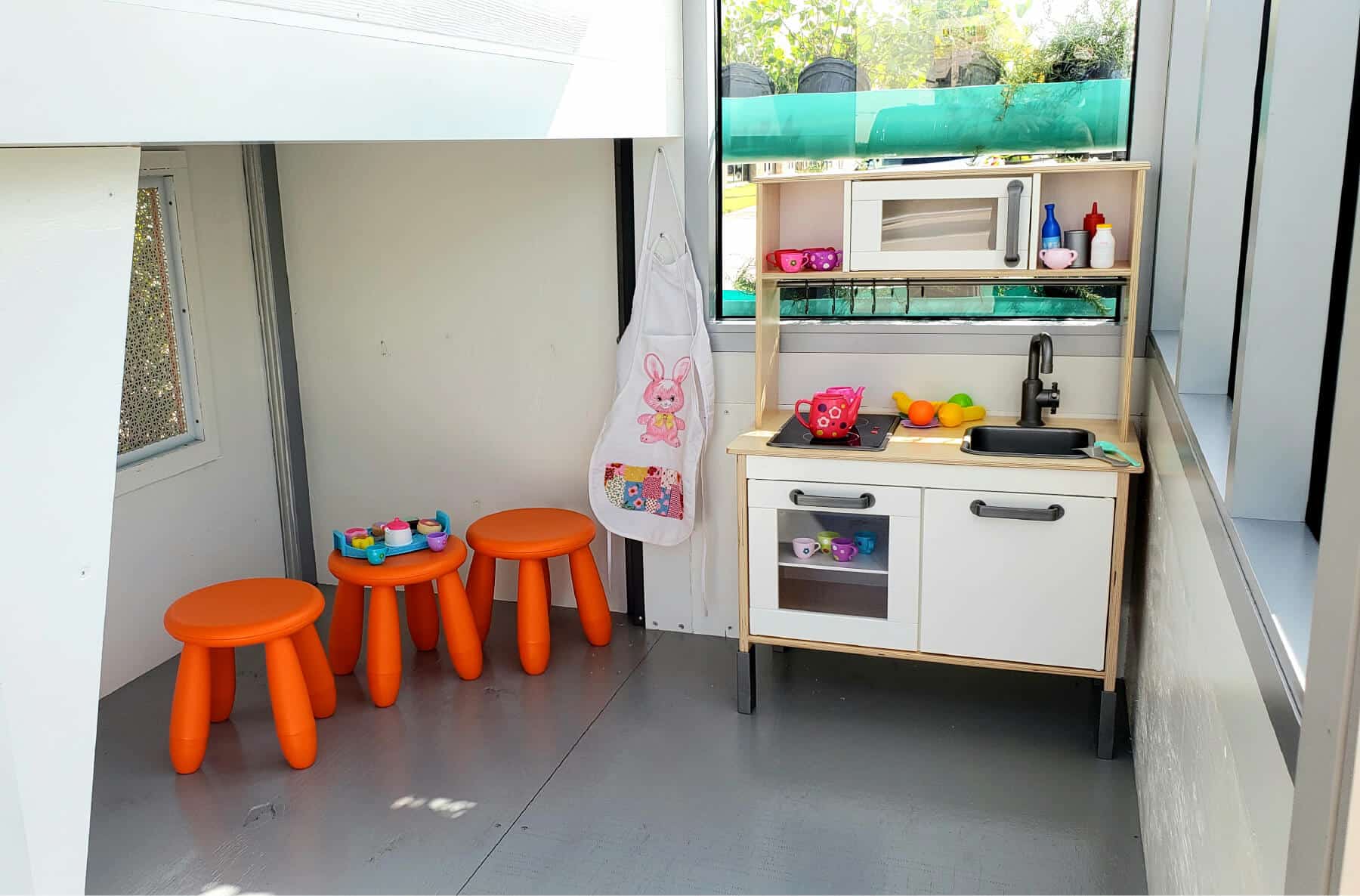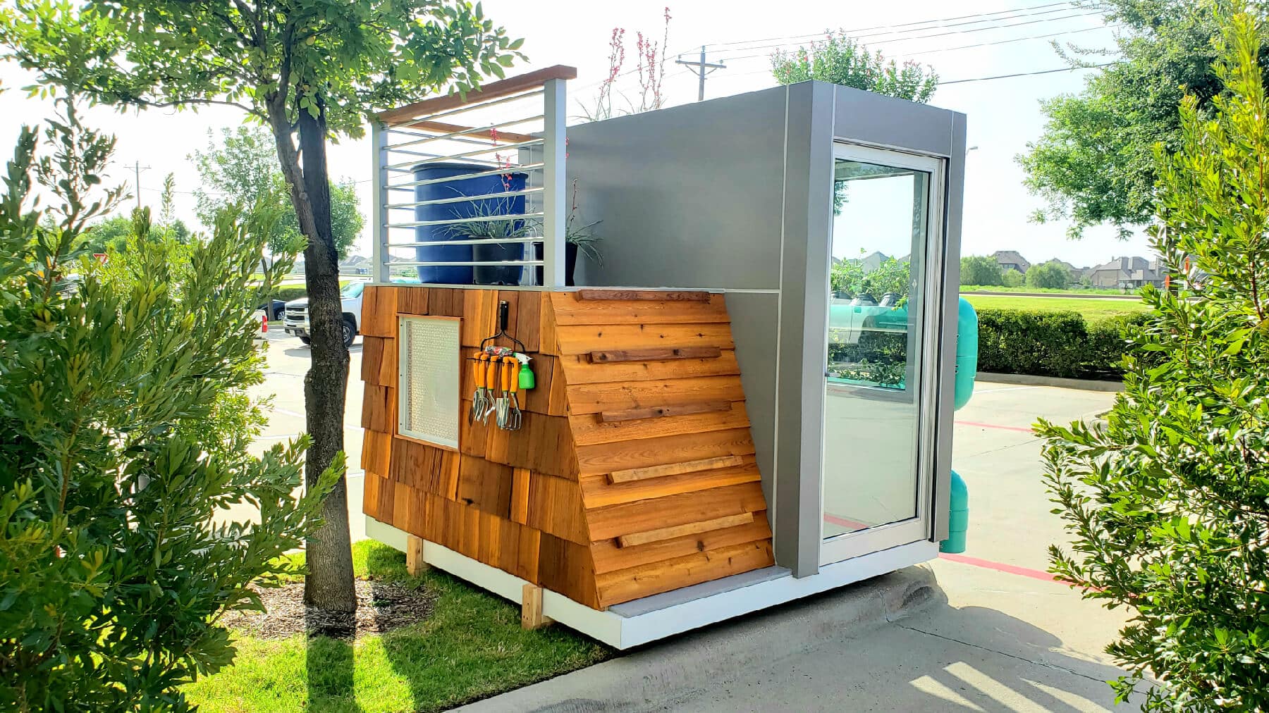 The team wanted the design to be sustainable and educational, says Samantha Eaton. “Our design, called ‘The Harvest House,’ shows kids they can grow and eat their own plants. They can see water collect in the rainwater cistern, and then can use that water to help the plants grow! We mixed learning with play to get the best of both worlds.” Harvest House also features a rooftop garden and a tiny kitchen. The playhouse celebrates sustainabiliy, renewable energy, crop propagation, and the integration of wellness into design.