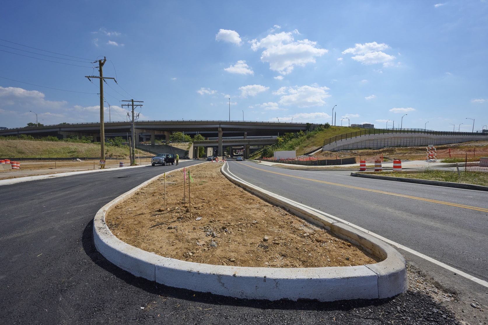 - Relocated utilities—including water, gas, sanitary sewer, stormwater, power, and communications