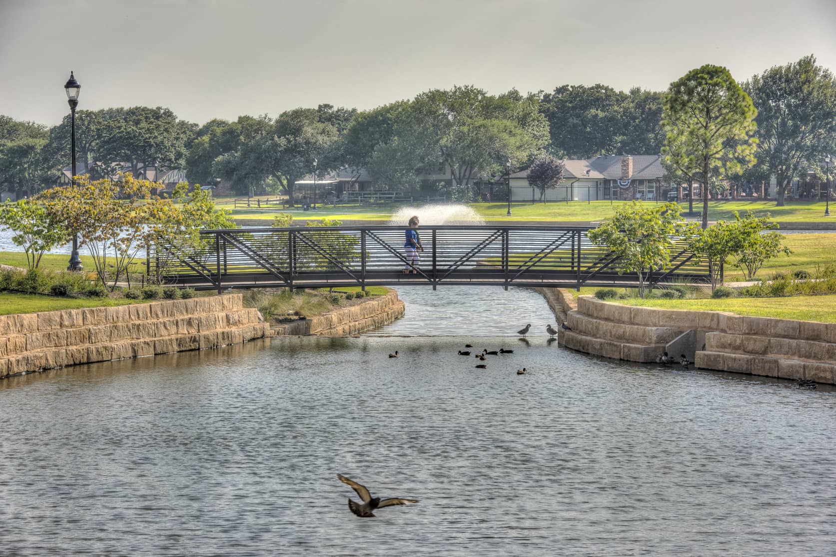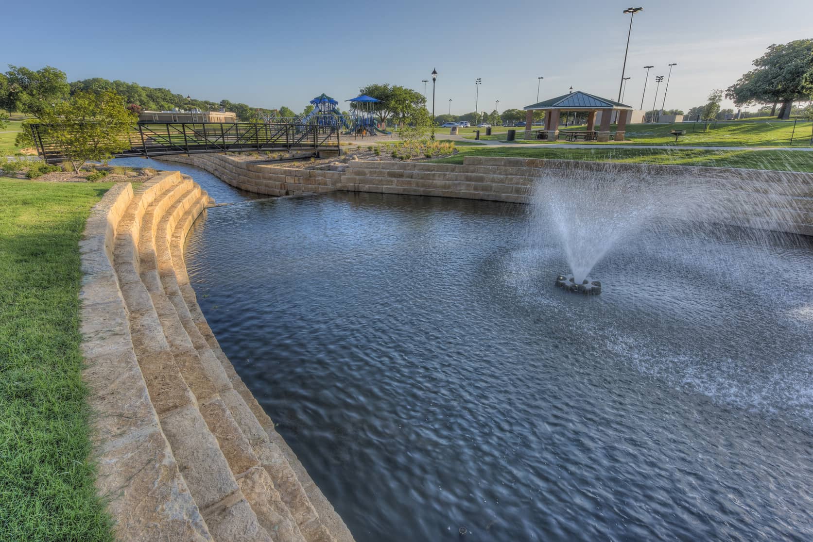 The Phase I design included the reshaping and dredging of the pond and drainage channel in an effort to improve the visual and environmental quality of the bodies of water as well as the functionality of the drainage system. Kimley-Horn drainage engineers worked with environmental specialists to complete a design that met the objectives of the City as well as the requirements of the U.S. Army Corps of Engineers. Additional park improvements developed in Phase I included the internal trail network, pavilions, fishing piers, overlooks, pedestrian bridges, playgrounds, shade structures, and associated infrastructure improvements. The total cost of Phase I was approximately $3.5 million and was completed in July 2016. The Bedford Boys Ranch Project combined park master planning, drainage engineering, roadway planning, and landscape architecture to design a crown jewel park for the City of Bedford. By helping to create excitement for the project and working hard to get competitive bidding of Phase I, the City was able to harness the momentum of this project and then selected Kimley-Horn to help plan for the bond election to fund the next phase in November of 2017.