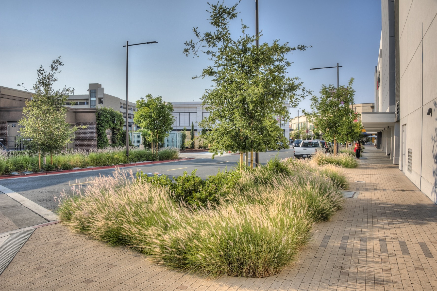 A major sustainability initiative for the project was stormwater treatment. Kimley-Horn planned and designed creative solutions for stormwater treatment facilities for the entire site, including various Low Impact Development measures that are seamlessly integrated into the overall design of the shopping center. Other key sustainable elements of the project include on-site solar panels, efficient LED lighting, habitat restoration, recycled materials from demolition used to create paving and roof surfaces, and drought-tolerant landscaping that will reduce water usage.