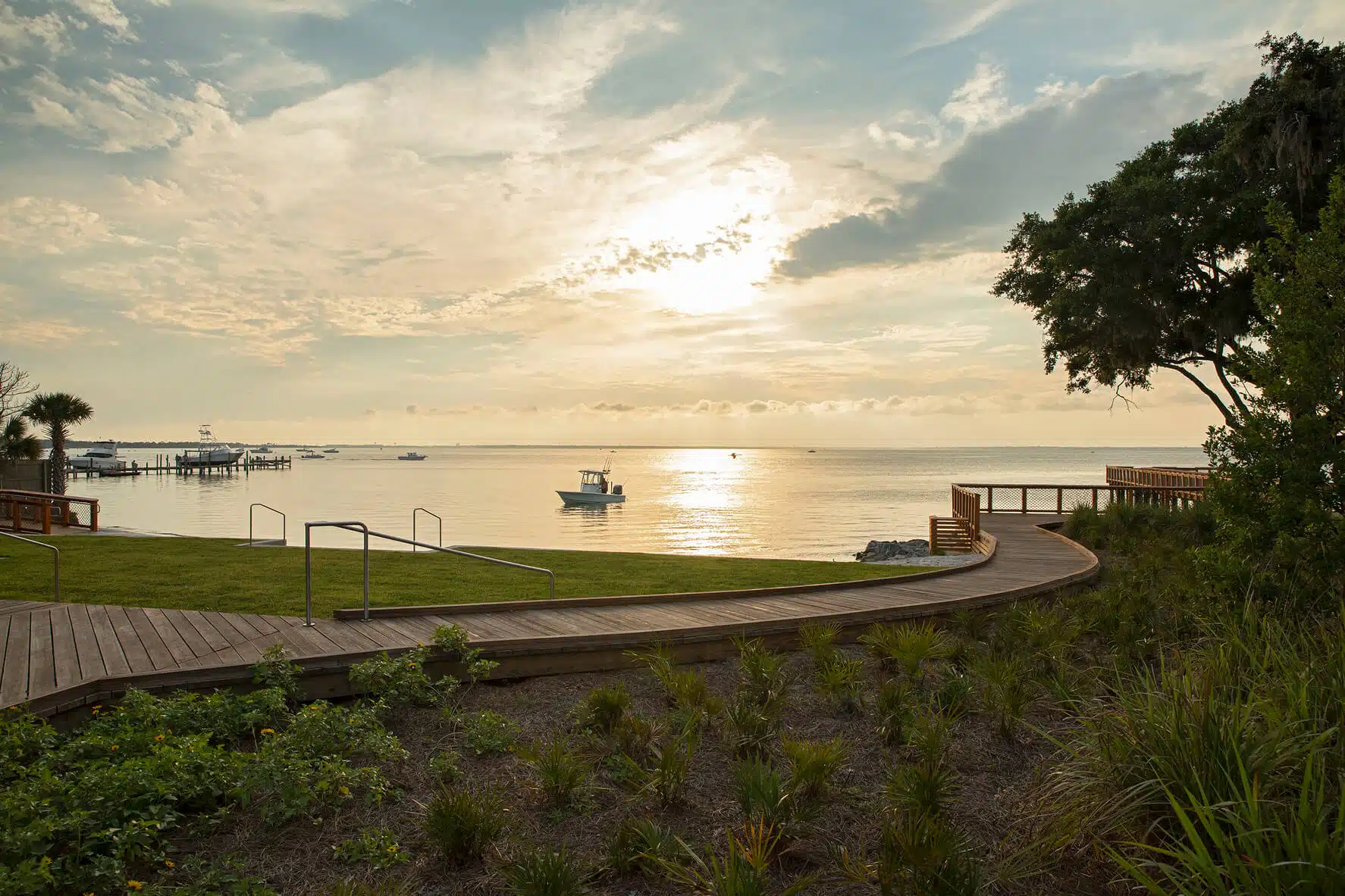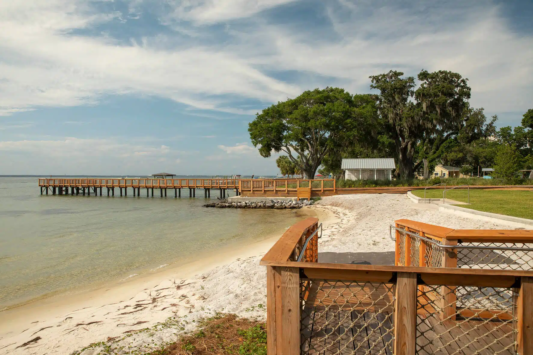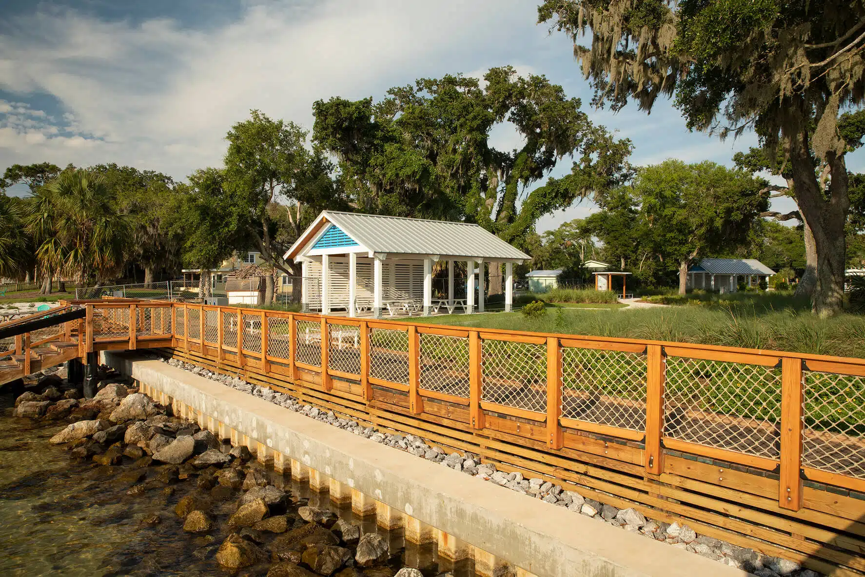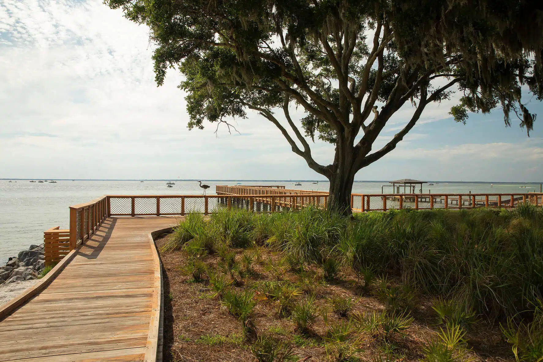 The finished park employs sustainable design elements, water-evocative features, and historical interpretive elements that support education and the community’s heritage. The team chose features and materials with a mind for environmental preservation and utilized sustainable stormwater treatment methods. Additionally, accessibility was a key goal in park design, and the team ensured that Captain Leonard Destin Park’s boardwalks, walkways, and pier access were ADA compliant and built for inclusion.