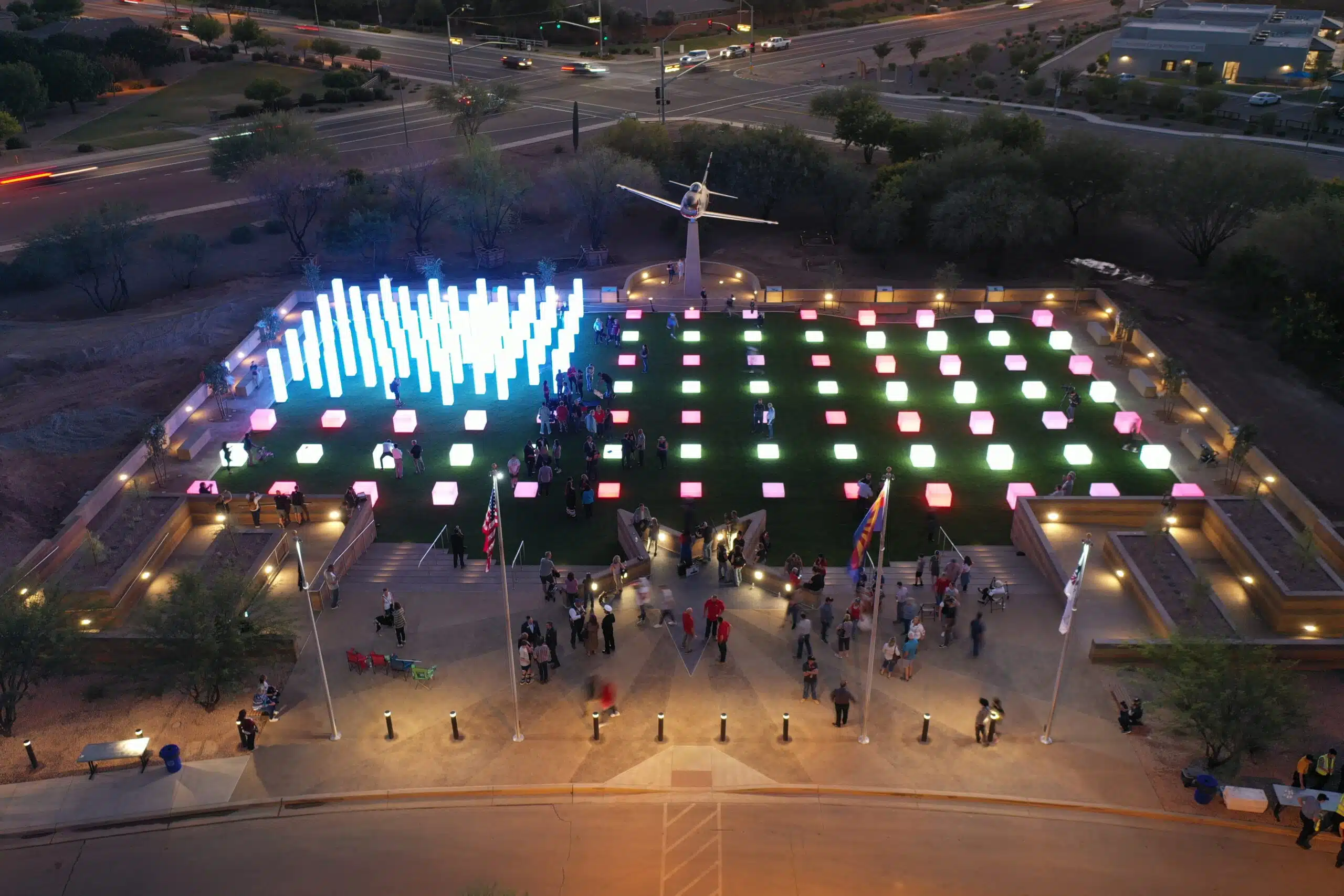 With captivating RGB and LED lighting, the Field of Honor Memorial illuminates the hard-won freedoms of our veterans and their families—helping visitors step out of their busy lives and into a contemplative space.