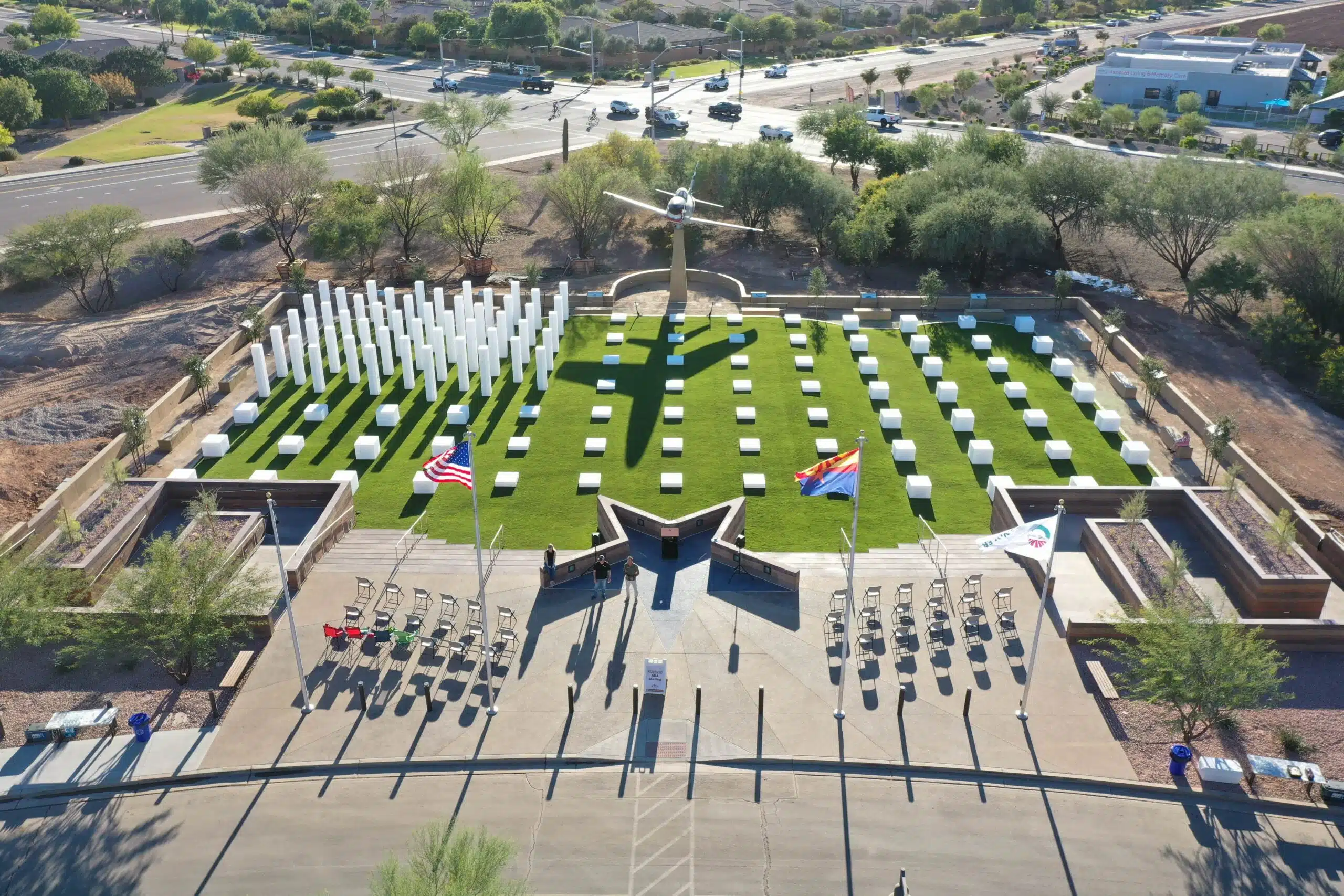 Nestled within the 113-acre Veterans Oasis Park in southeast Chandler, Arizona, the Field of Honor Memorial provides an opportunity for visitors to reflect on the sacrifices and stories of veterans. Across a decade, Kimley-Horn partnered with the City of Chandler, relevant stakeholder groups, and Hunter Contracting Co. providing the following services for the memorial design: