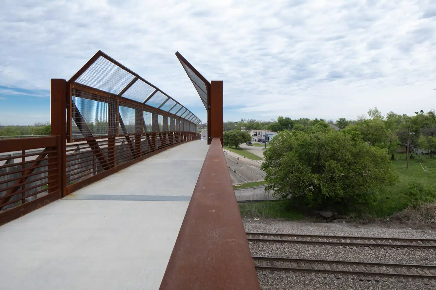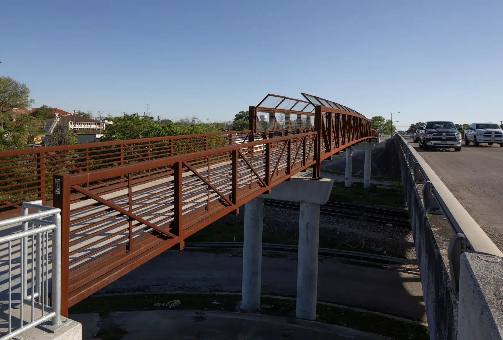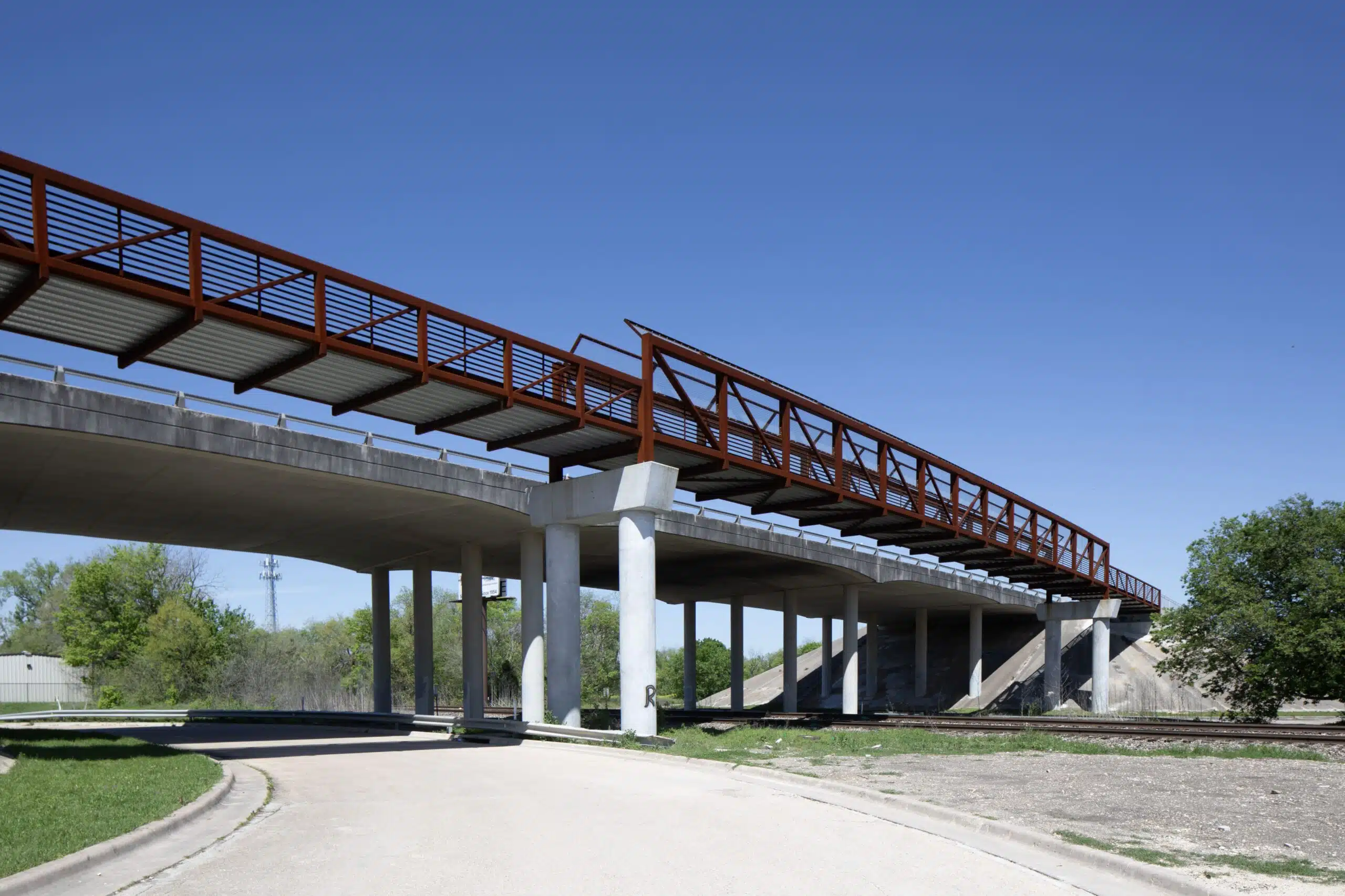 Kimley-Horn provided the Texas Department of Transportation (TxDOT) with select services to enhance a pedestrian bridge in Temple, helping to address the lack of multimodal use functions and bolstering mobility. The area surrounding the 265-foot bridge is well-traveled by bicyclists and walkers, and as the city and region have grown, so has the need for more connectivity. To support improved travel opportunities, Kimley-Horn managed plans, specifications, and estimates (PS&E) design for a shared-use path (SUP), three-span pedestrian bridge, retaining wall, and sidewalk along the upgraded bridge.