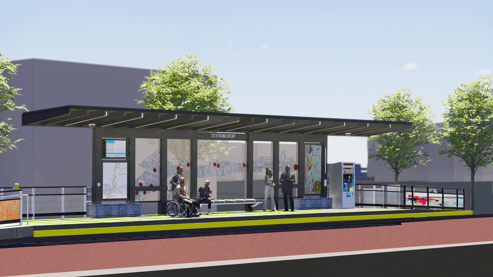 Our design team worked closely with our architectural partner Wendel to design 14 BRT stations with level boarding, putting accessibility for people of all ages and abilities at the forefront. The stations will feature state-of-the-art technology with real-time passenger information displays, CCTV security cameras, emergency phones, and community art. In addition to station technology, Kimley-Horn designed red bus only lanes, full depth pavement rehabilitation, and upgrades to 28 traffic signals along the BRT corridor to accommodate Transit Signal Priority and designed queue jumps at select intersections. This technology will allow buses to receive priority along the route, supporting 10-15-minute headways.