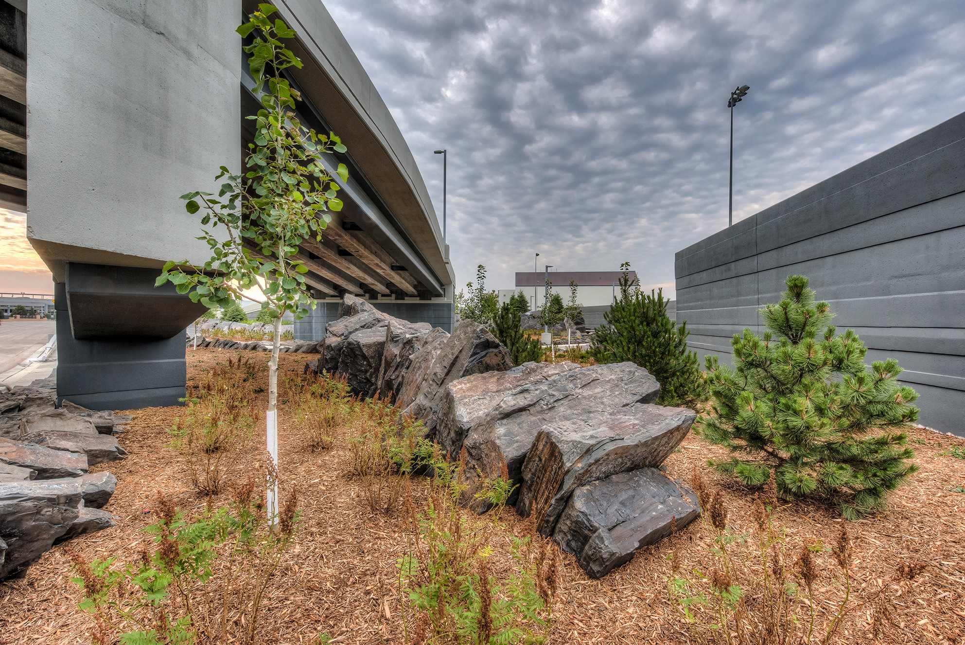 This green roof presented an opportunity to the design team and client as the first green roof MSP has attempted. In line with green roof philosophies, the balance of heating and cooling this portion of the expansion was a significant costs savings and includes additional stormwater treatment and storage as well as extending the roof life. A modular tray system with locally grown plants was chosen to be adaptable to both the client and the roof. As the first green roof that the MAC has invested in, they were concerned about the ease of future roof repairs. By employing a user-friendly tray system, MAC maintenance staff can keep a close eye not only on the surface, but the roofing system below.