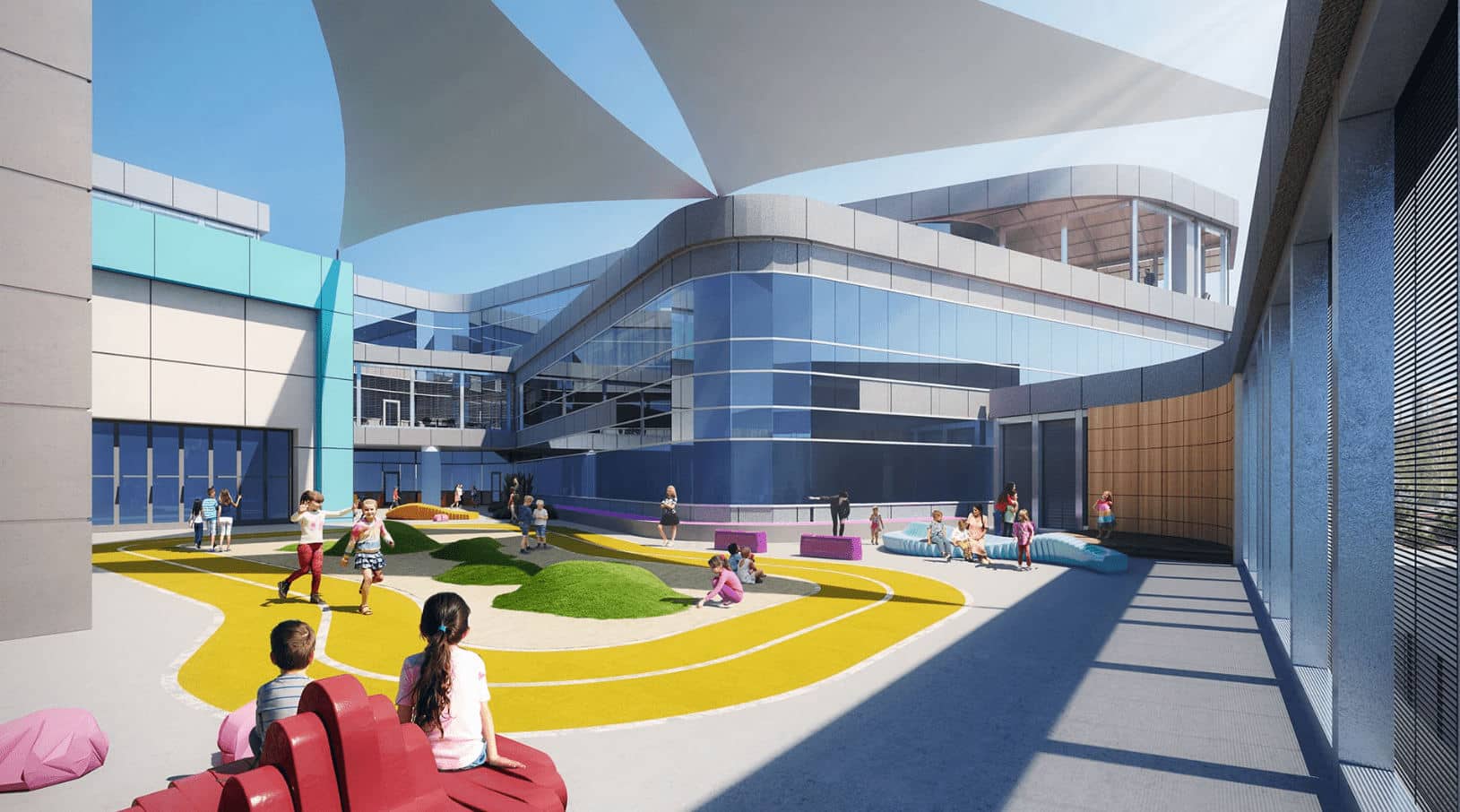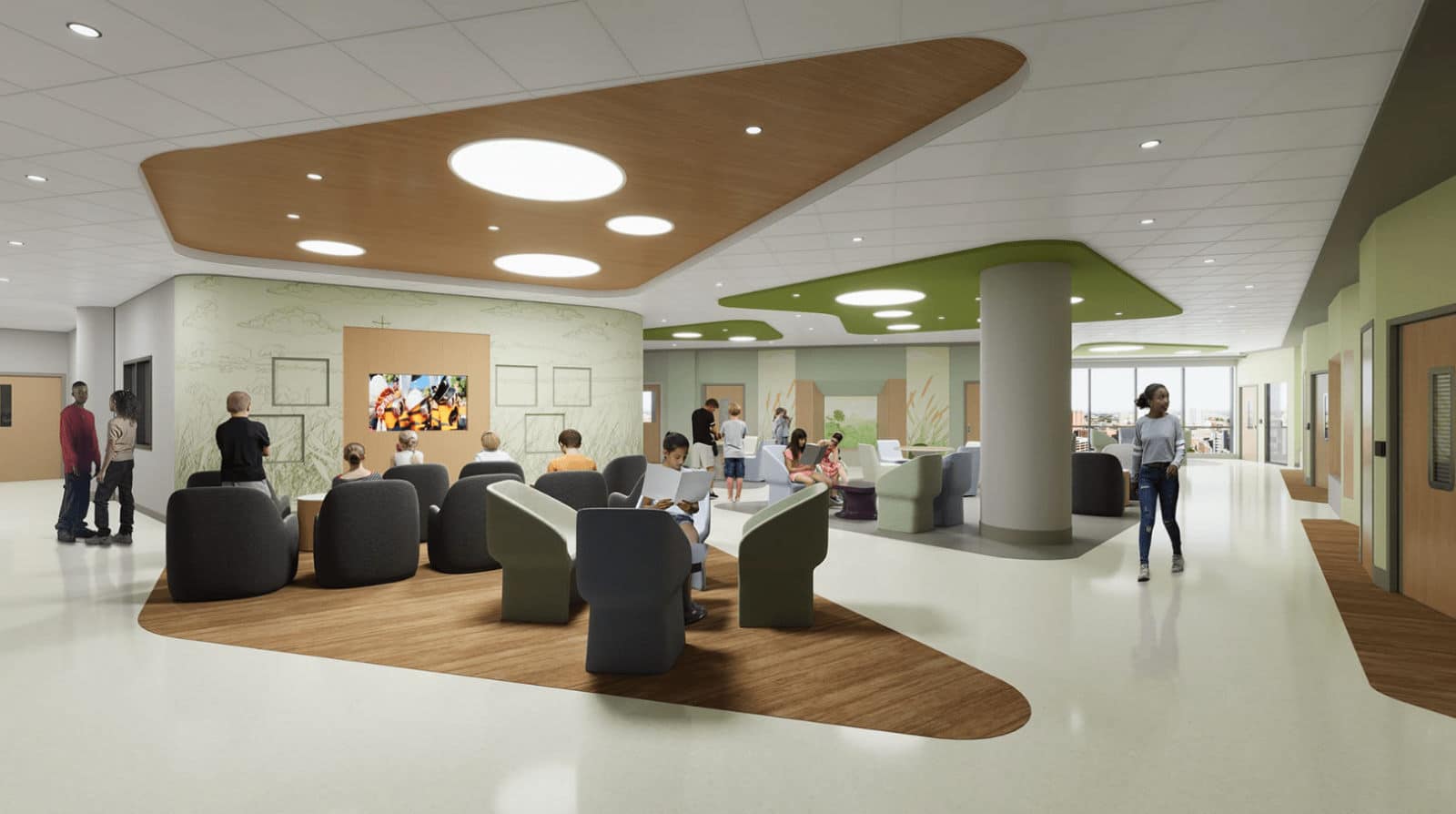 Designed to maximize space efficiency, the 172,000-square-foot behavioral health center will have three floors for patient care and a 285-space, three-floor parking garage underneath it. The project team and our client integrated protective infrastructure to prioritize patient safety while also cultivating green spaces, an elevated playground, and a half-gymnasium to support exploration and play. Our work to provide precise site design, connect pedestrians, and consider patients is on track to help the health center offer new opportunities for pediatric care in the state.