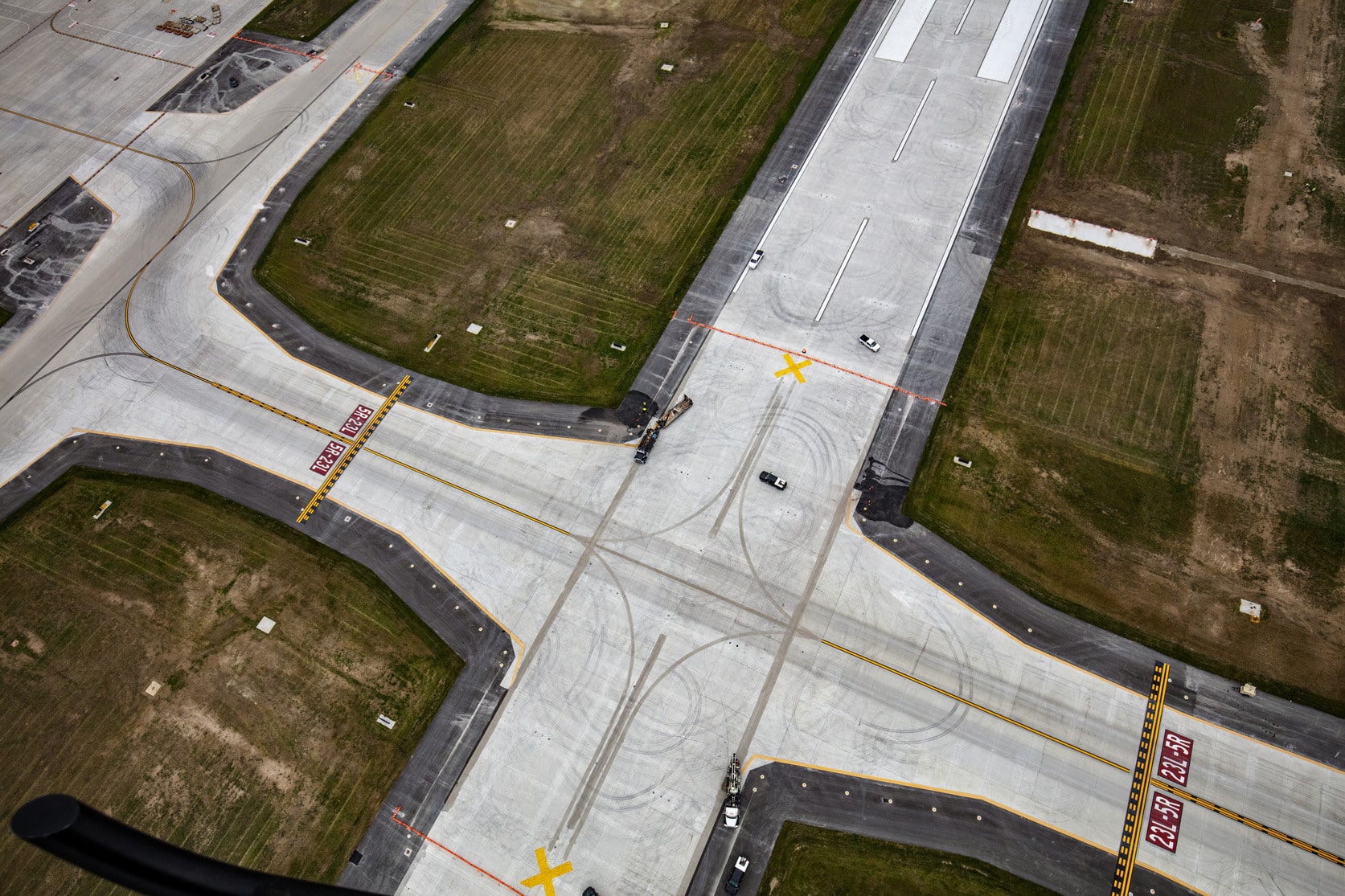 The 5R-23L runway is one of two primary runways at IND and is adjacent to FedEx’s cargo hub, so the team needed to develop multiple reconstruction and phasing options to determine the most sustainable, resilient, and cost-effective solution with the least disruption to the airport’s operations. Only two entrance/exit points from the apron to Taxiway D could be closed at a time, and this required extensive strategy to design phases and determine the construction sequence that would minimize runway closure time.