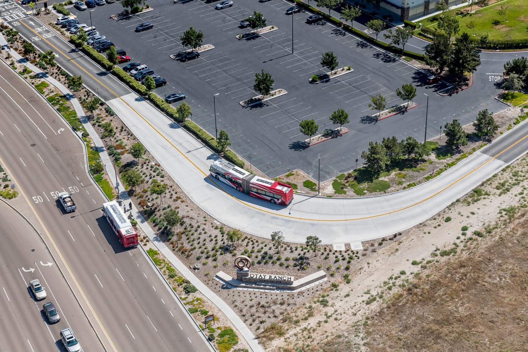 A prime focus of this project was providing rapid transit services to the high-density, mixed-use smart communities in Eastern Chula Vista. Designing right-of-way for the dedicated bus guideway and station resulted in the integration of new and existing plans for the Otay Ranch Master Planned Community. The existing plans had been in motion since the 1990s.