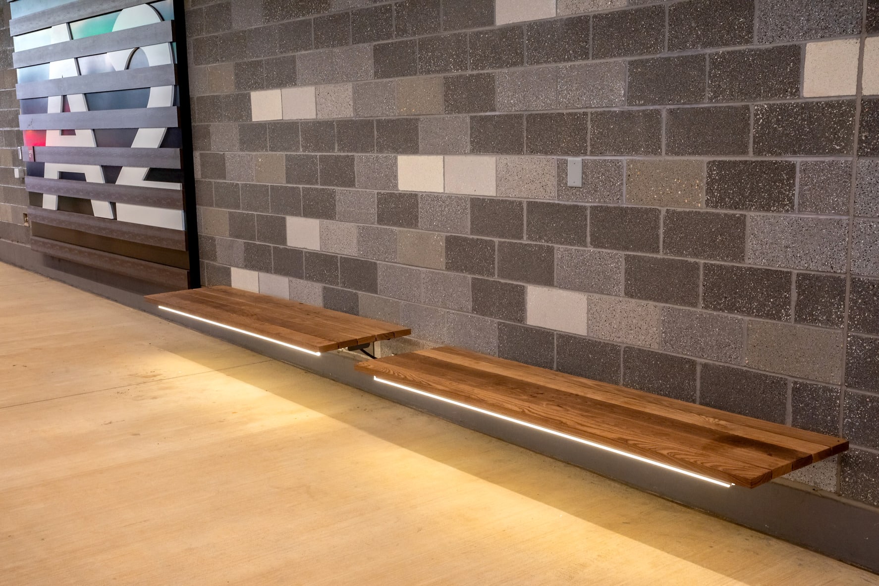 - Passenger amenities, including real time arrival signage, waiting areas, public restrooms, benches, bike and scooter racks, lockers, wayfinding maps and signage, and an information booth