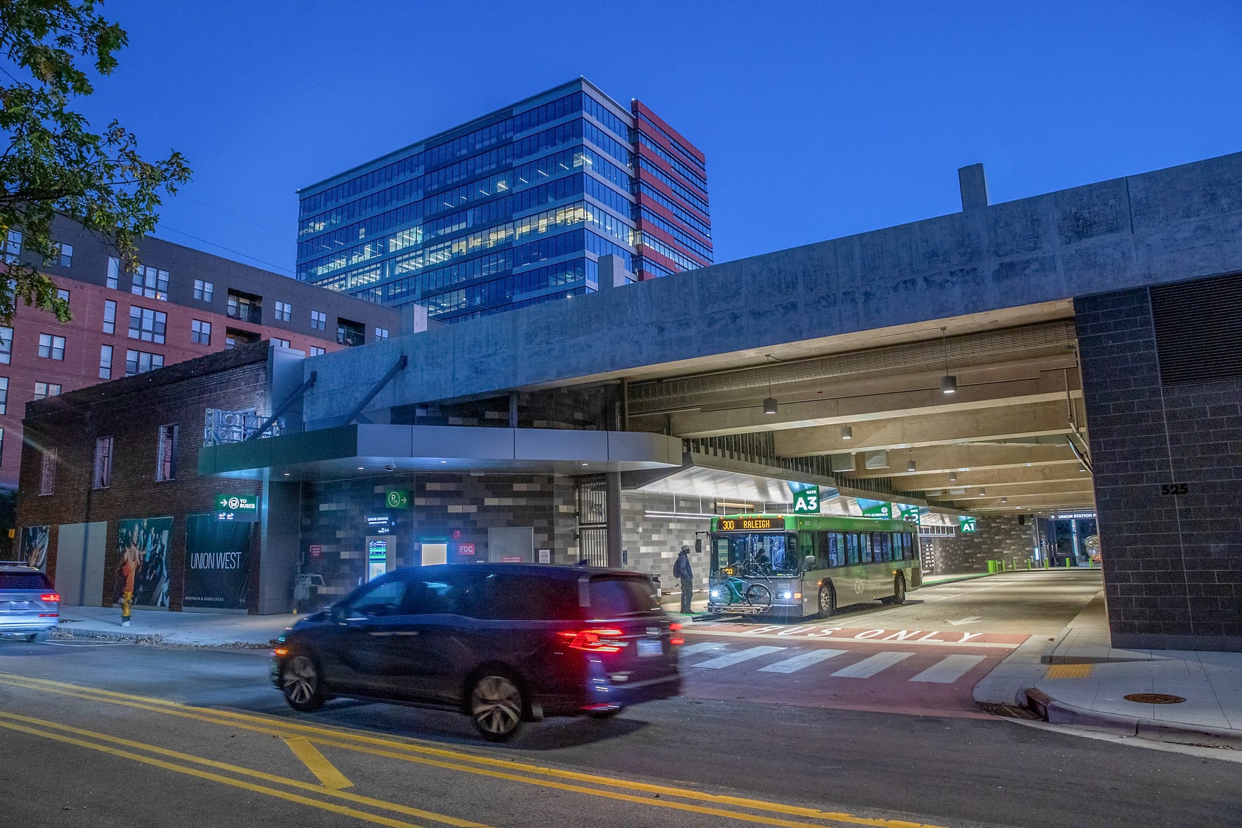The Raleigh Union Station Bus Facility (RUS Bus)—a new multimodal transit facility in downtown Raleigh—opened in August 2025, marking a major milestone for transit in the Triangle. Kimley-Horn provided transit design services for the facility, which connects Amtrak; local and regional buses such as GoTriangle and GoRaleigh; and future BRT services while also providing bicycle and pedestrian access. RUS Bus integrates a street-level bus facility with bike- and pedestrian-friendly spaces as well as mixed-use development in one central and lively destination in the Warehouse District.
