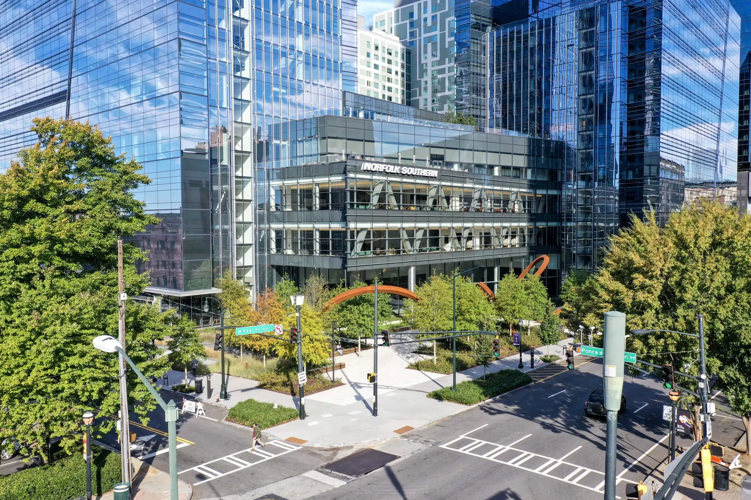 Our relationships with Cousins Properties and the City of Atlanta enabled us to support approximately 3,000 Norfolk Southern employees as they establish their work and thrive in their new space. Several years after the grand opening in November 2021, the new headquarters still highlights inventive sustainability, enhanced wellness amenities, and an opportunity for economic growth.