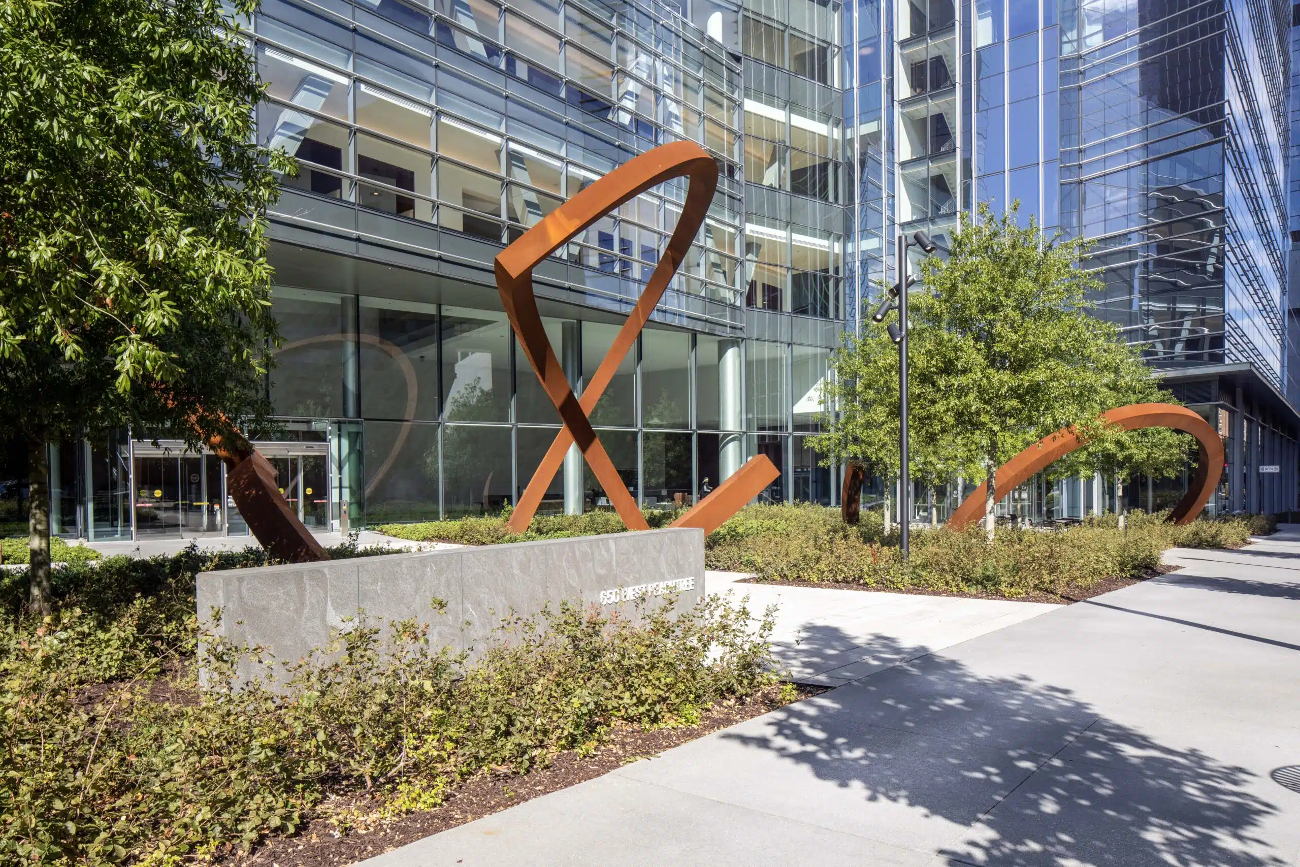 This unique three-acre urban campus was designed to prioritize workplace wellness and work-life balance with amenities like a fitness center and daycare services—as well as an outdoor plaza, terraces along West Peachtree Street NW, and a courtyard garden.