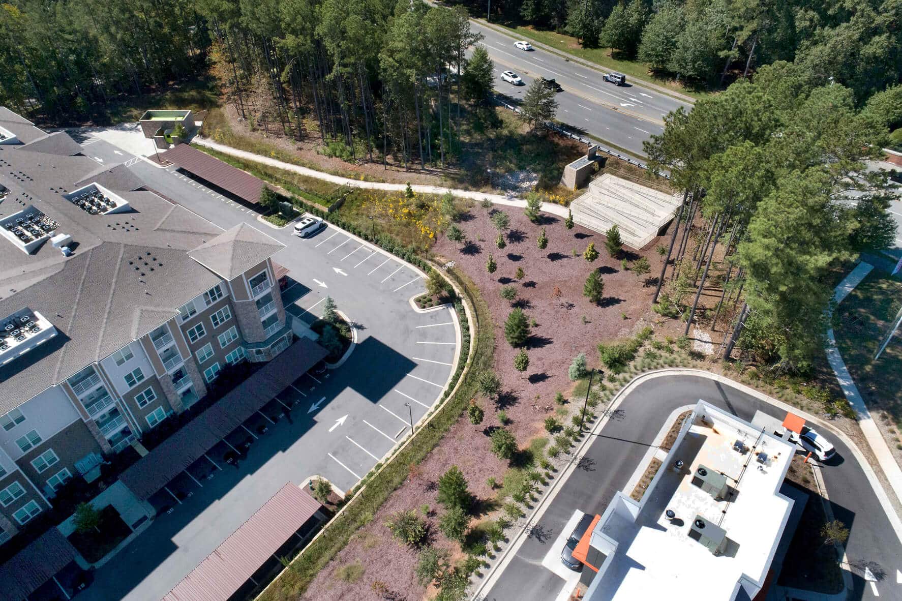 Working collaboratively across disciplines, Kimley-Horn ensured a smooth project timeline and delivery. Designing an independent living community requires special consideration of the end user, as the comfort and quality of life for these residents is directly impacted by the decisions made during the development process. As a result, ADA compliant walking paths, courtyard amenity design, and full utility coordination were included with the residents in mind. The site also presented challenging topography and required creative design, including the expansion of the existing stormwater wet pond to accommodate the development. Our team was involved in every aspect of the development and design phase, from administrative site plans to final construction documents.