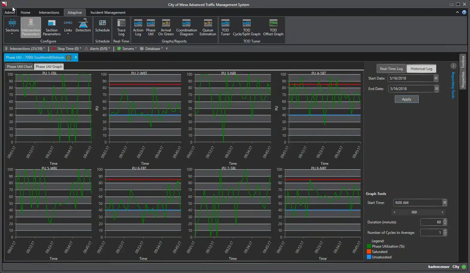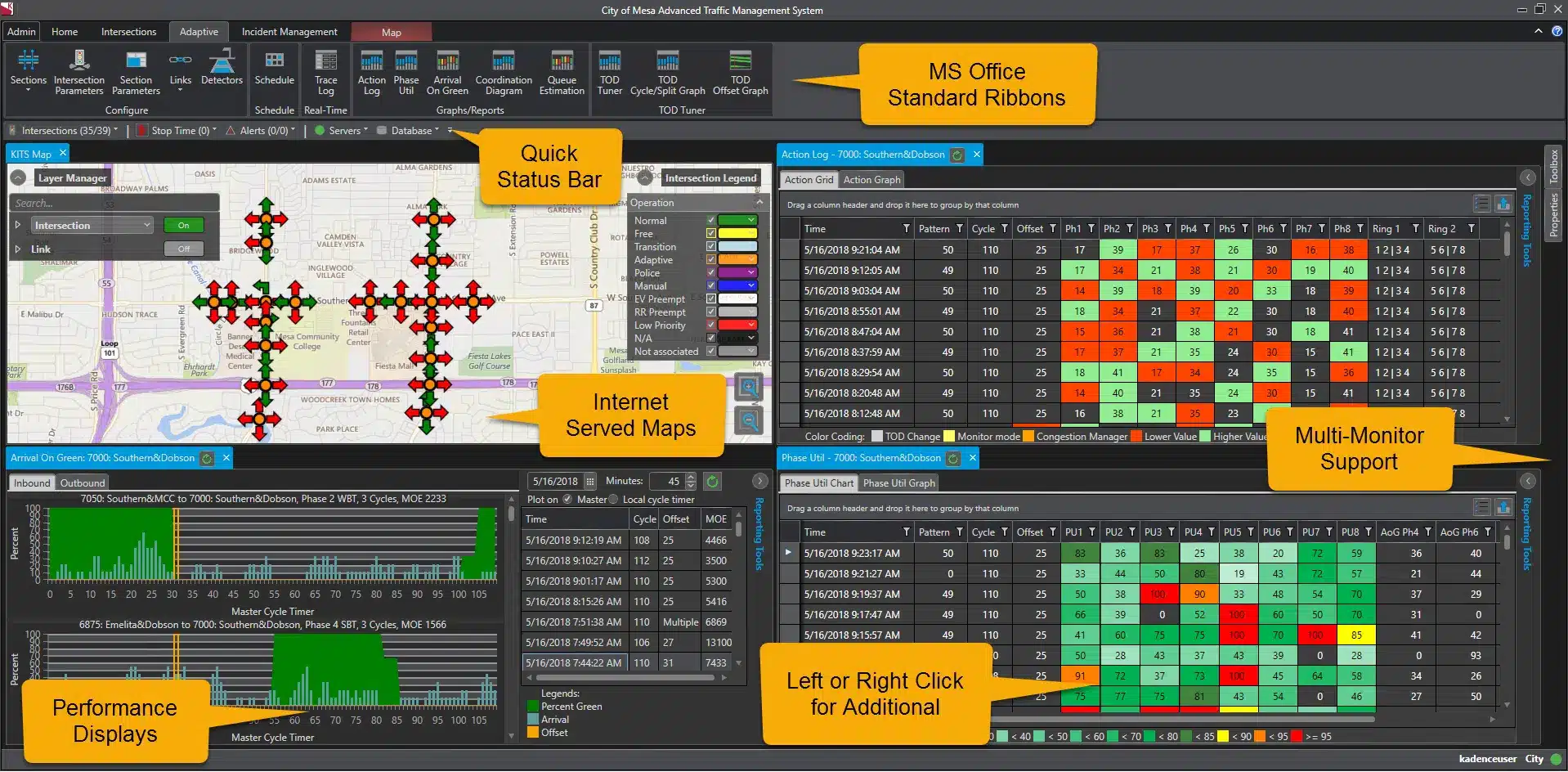 A Kadence™ license gives your entire transportation agency access to the central software module, as well as Kimley-Horn system designers, developers, and integration specialists to meet your configuration needs. Intuitive and user-friendly dashboards allows you to measure effectiveness and meet your goals, including automated analysis of “before” and “after” conditions.