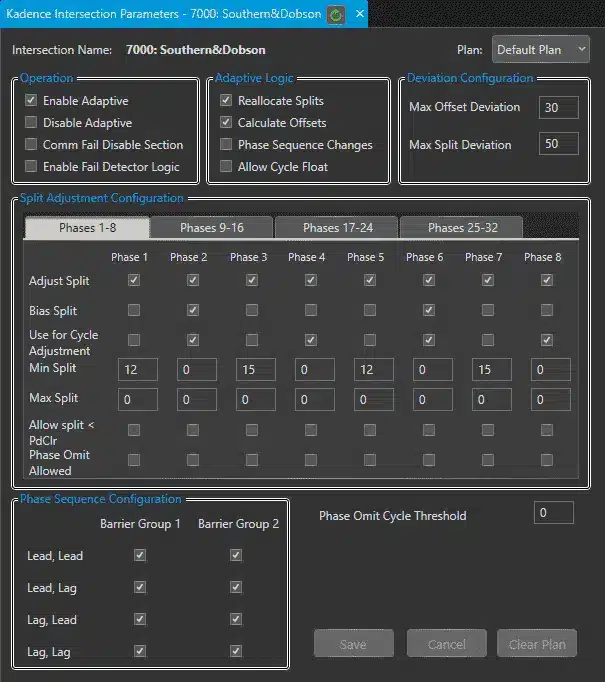 In the Kadence™ split tuning algorithm, coordinated phase utilization measures can be biased so that more time for that movement is protected, which provides more opportunities for progression along the route. Cycle time can also be increased to provide additional throughput on critical routes and phase sequences can be adjusted from lead-lead to lag-lead for low opposing turning traffic volumes.
