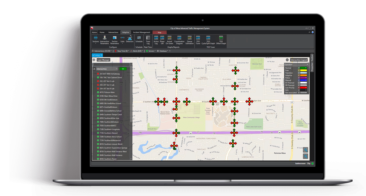 Kimley-Horn’s Kadence™ software solution is a vital tool in a traffic engineer’s toolbox. Our easy-to-deploy system with minimal infrastructure and configuration requirements can help you manage fluctuations in demand and short- and long-term changes in traffic patterns all from your central Traffic Management Center (TMC). With zero field components to manage, maintain, or upgrade, this integrated system will help your agency meet its objectives and increase performance.