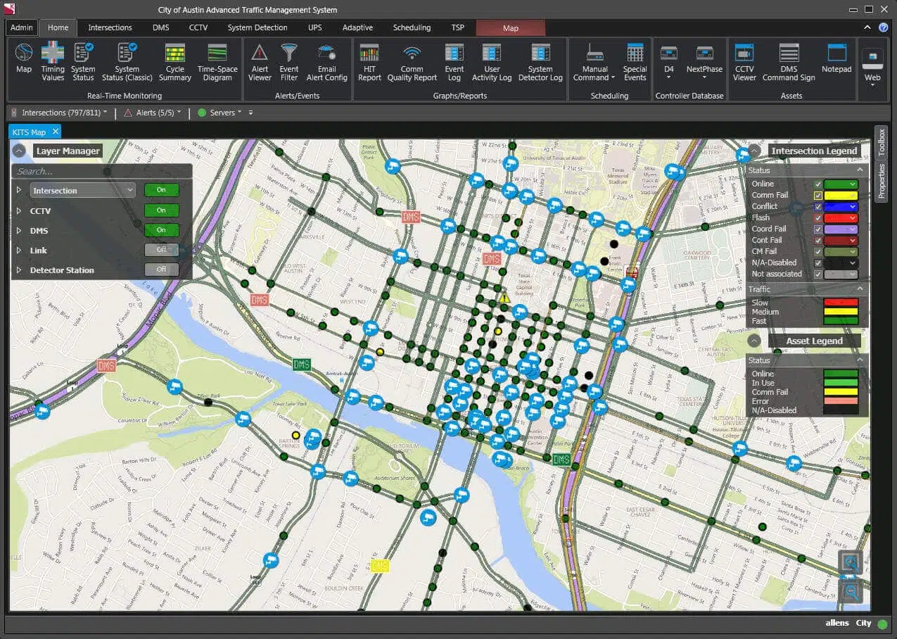 Successful traffic operations are founded on real-time control and effective monitoring software. The customizable KITS™ freeway and arterial transportation management system provides the right technical solutions to fit your current needs and future goals, all while supporting your existing infrastructure.