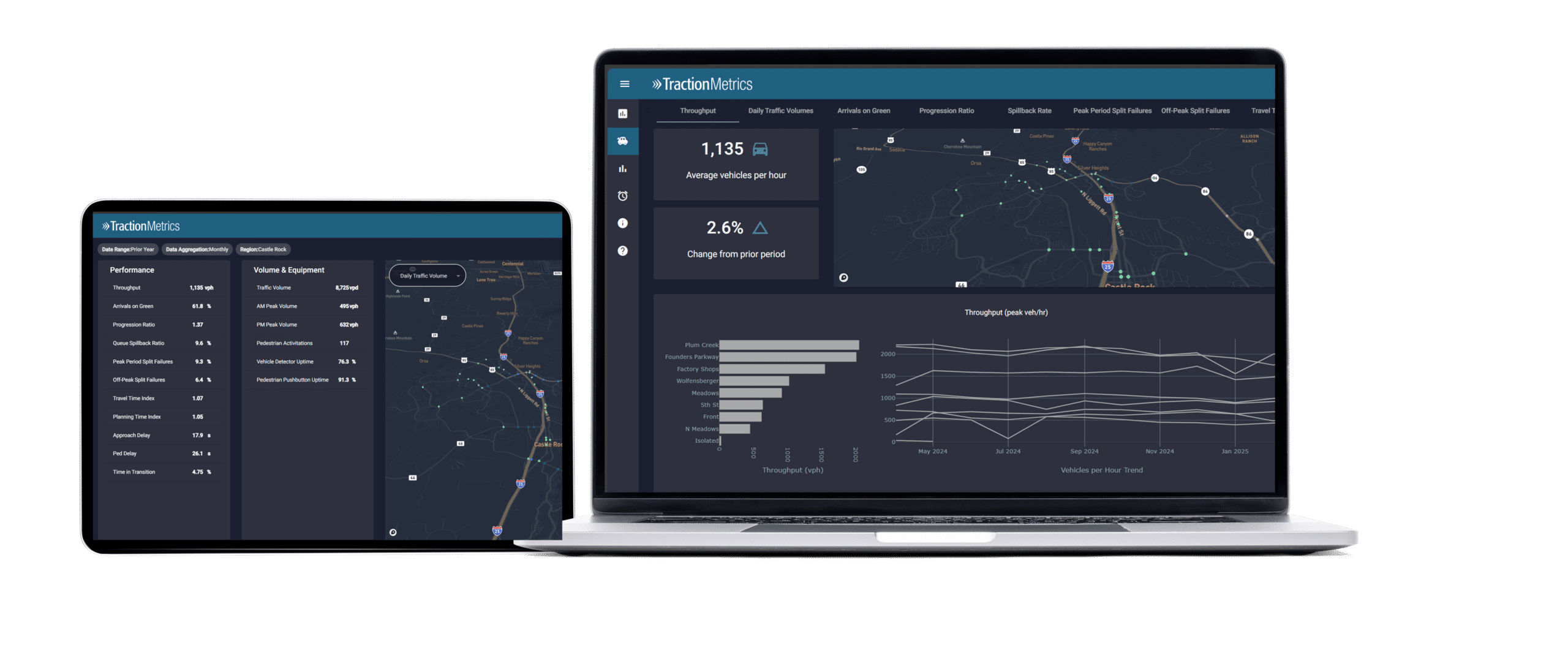 A Smart City runs on proactive traffic signal management to keep traffic flowing smoothly. Since transportation networks change minute-to-minute, agencies need real-time data and analytics to stay ahead. Traction Metrics is a transportation management solution that enables agencies to measure signal performance and implement remote troubleshooting across their entire traffic signal system.